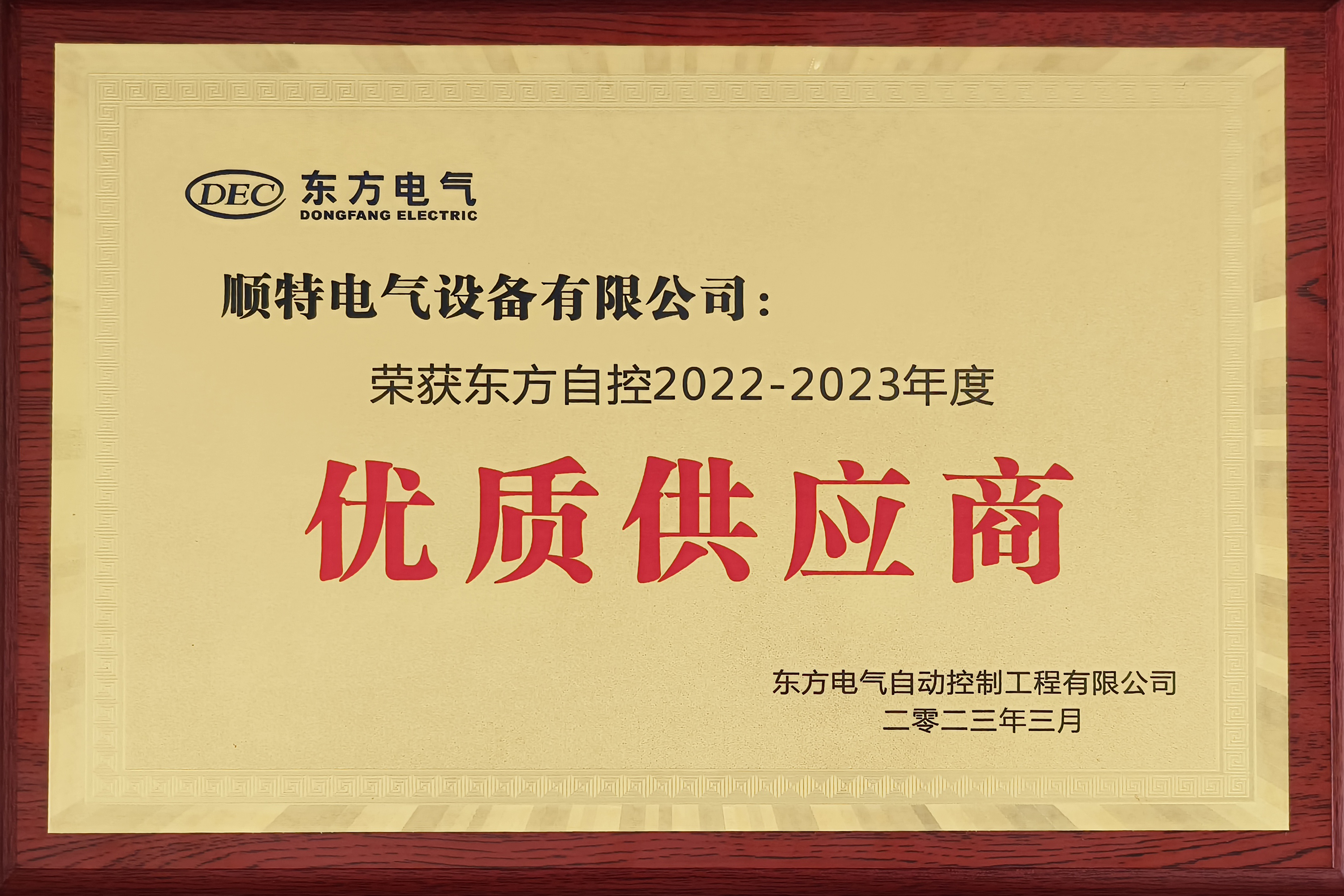 近日,我司出席了東方自控主題為“攜手新時代,共創(chuàng)新未來”的2023年度供應(yīng)鏈大會,并榮獲“東方自控2022-2023年度優(yōu)質(zhì)供應(yīng)商”獎項(xiàng)。