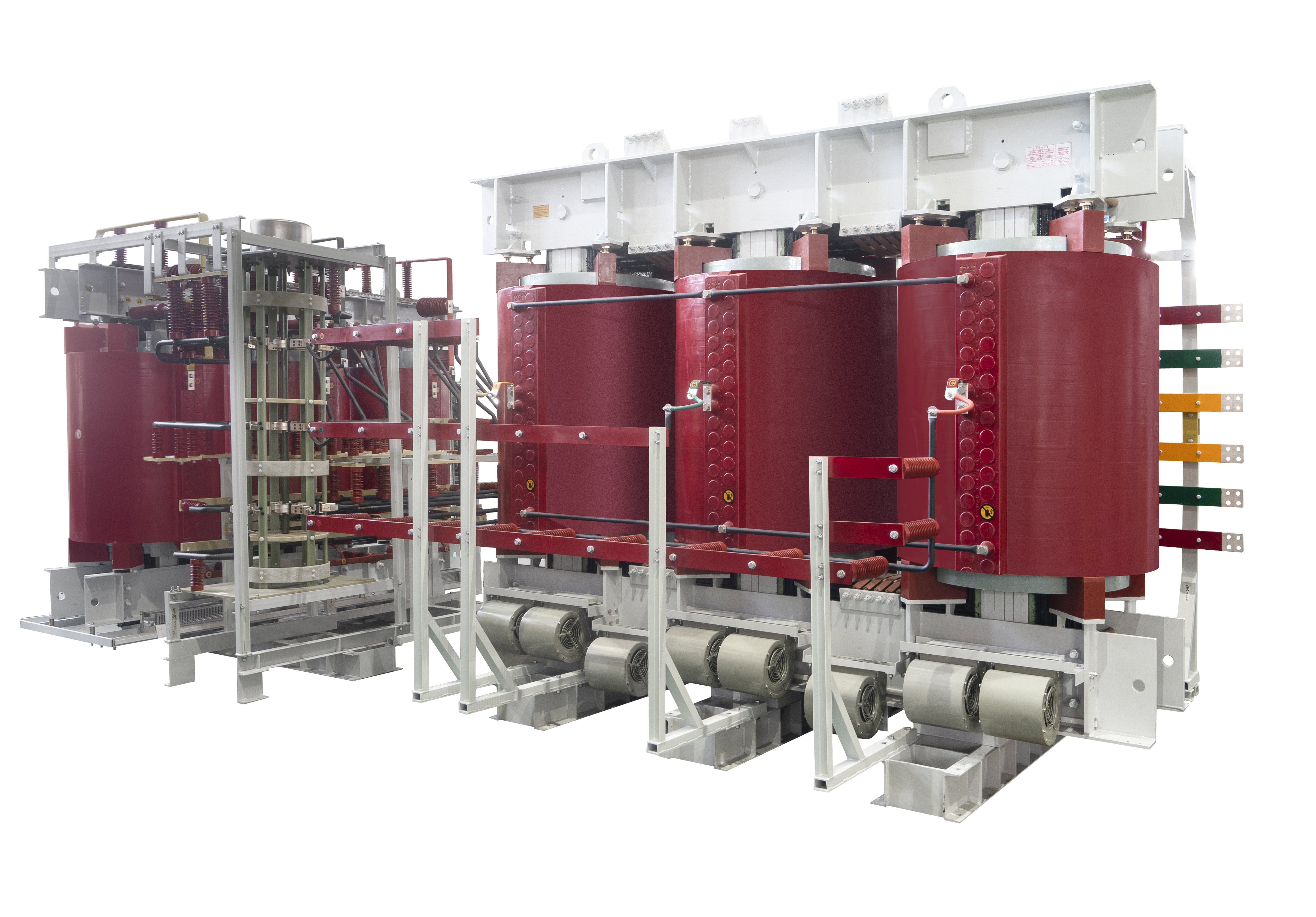 直流融冰配套用變壓器為12脈波無勵磁調(diào)壓樹脂絕緣干式整流變壓器,其具有容量大、調(diào)壓范圍(7%~100%)、過負(fù)載能力強(qiáng)等特點(diǎn)。我司創(chuàng)新采用單獨(dú)自耦調(diào)壓變壓器實(shí)現(xiàn)干式整流變壓器的寬范圍調(diào)壓技術(shù),配合無勵磁分接開關(guān)快速方便調(diào)壓,避免了拆裝分接銅排調(diào)壓帶來的繁重工作量。