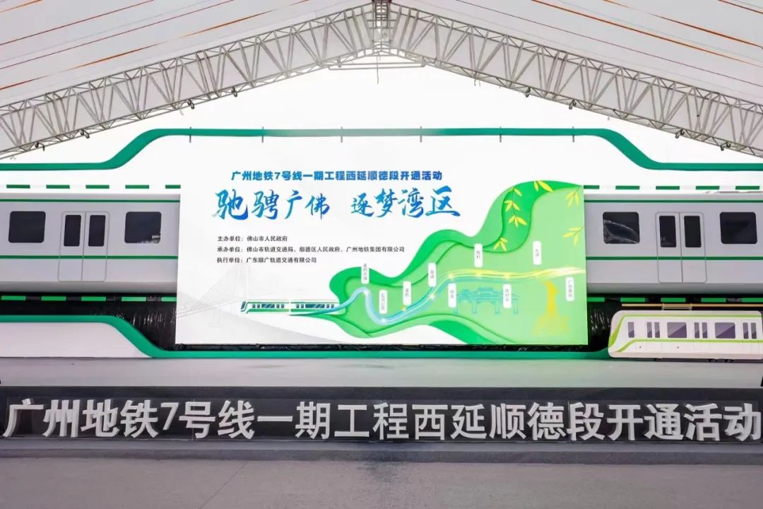 廣州地鐵7號線西延順德段起于美的大道站,無縫對接廣州南站,全長13.447km,共設(shè)8個站點,線路途經(jīng)廣州市番禺區(qū)和佛山市順德區(qū)。地鐵開通后,從終點站美的大道站出發(fā)前往廣州南站僅需22分鐘,到大學(xué)城南站約49分鐘,為廣佛兩地居民提供更為快捷便利的出行方式,有利于促進(jìn)兩地科技、產(chǎn)業(yè)、人才的高效融合,為經(jīng)濟(jì)高質(zhì)量發(fā)展提供堅實支撐。